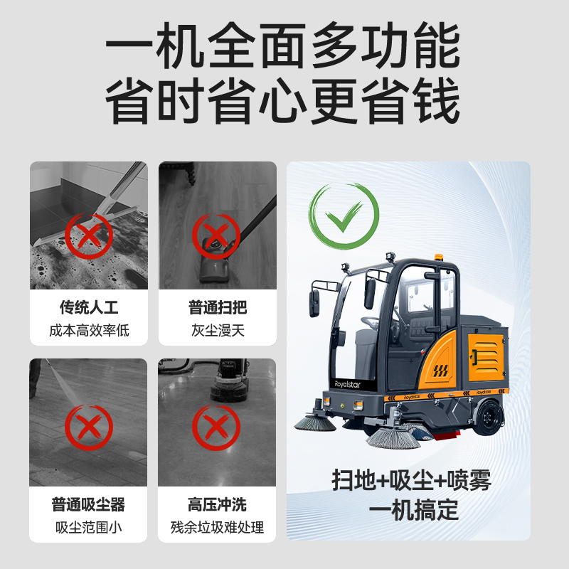 高效清掃室外駕駛式掃地車,掃地吸塵霧炮輕松應(yīng)對各種場景,每小時(shí)清掃22000㎡以上,抽離式垃圾箱拆卸簡單,一鍵震塵省...