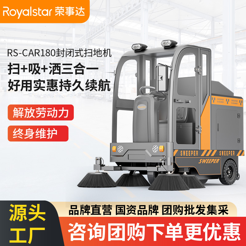 榮事達RS-CAR180 駕駛式掃地機配備了風扇,無需擔心夏季長時間戶外使用時的高溫問題。方向盤操作更加靈活方便,配...